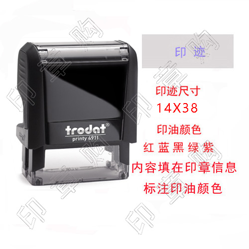 品牌:卓达规格:38 x 14mm优势:轻松盖印,印迹清晰,干净整洁,100,000次以上盖印寿命1. 使用方便——连续盖印,1次完成2. 印迹清晰——高精度,15年不退色3. 内置印台——方便注油;可更换印台4. 全景视窗——提高效率5.精确盖印定位对准设计,防滑设计