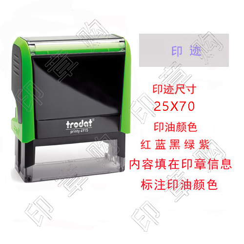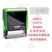 品牌:卓达规格:70 x 25mm优势:轻松盖印,印迹清晰,干净整洁,100,000次以上盖印寿命1. 使用方便——连续盖印,1次完成2. 印迹清晰——高精度,15年不退色3. 内置印台——方便注油;可更换印台4. 全景视窗——提高效率5. 精确盖印定位对准设计,防滑设计